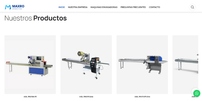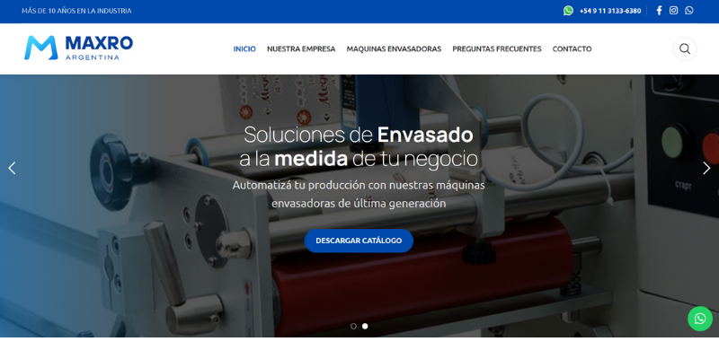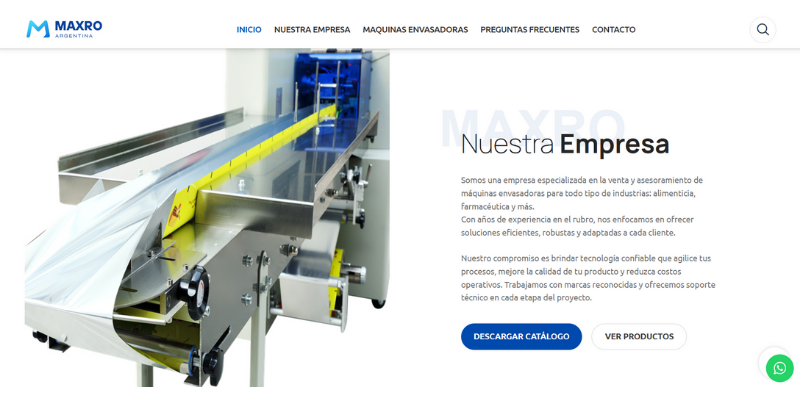 El sitio web de MAXRO es una plataforma intuitiva y funcional diseñada para ofrecer soluciones de envasado industrial a empresas de sectores como el alimenticio, farmacéutico y más. Con un enfoque en la claridad, permite a los usuarios explorar una amplia gama de máquinas envasadoras, conocer marcas asociadas y acceder a servicios de asesoramiento y soporte técnico. Su navegación fluida facilita encontrar información para adquirir equipos, solicitar consultoría personalizada o descubrir el compromiso de MAXRO con la calidad, la eficiencia y la optimización de procesos industriales.
